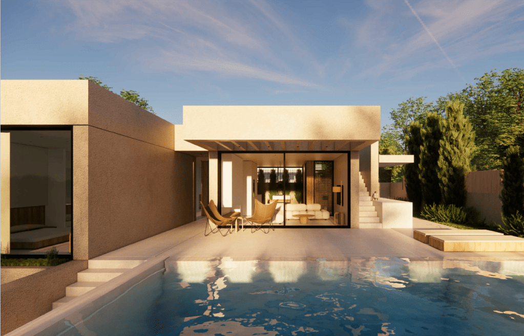 ESP Ofrecemos a la venta dos casas en construcción con vistas al mar en la zona de Polop (Alicante). La superficie de cada parcela es de 400m2, la superficie de la casa de dos plantas es de 220m2, la superficie de la casa de una planta es de 180m2. Cada casa tiene su propia piscina. Año de terminación 2025, precio en la etapa 799.000 y 895.000 euros.